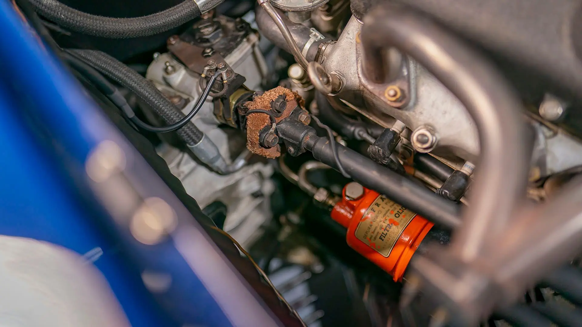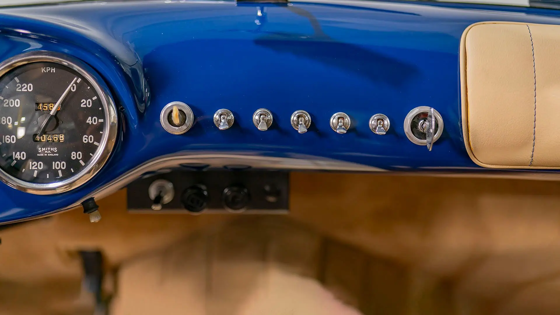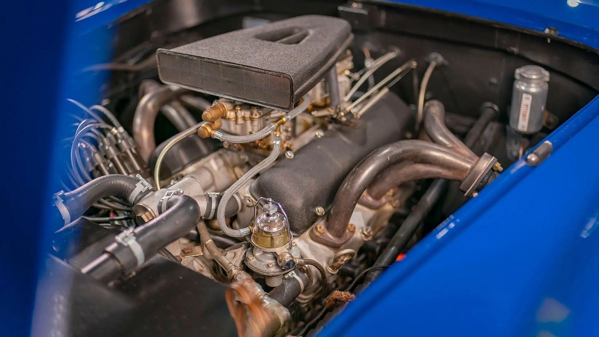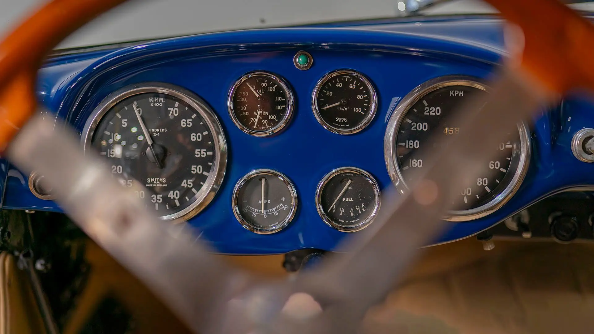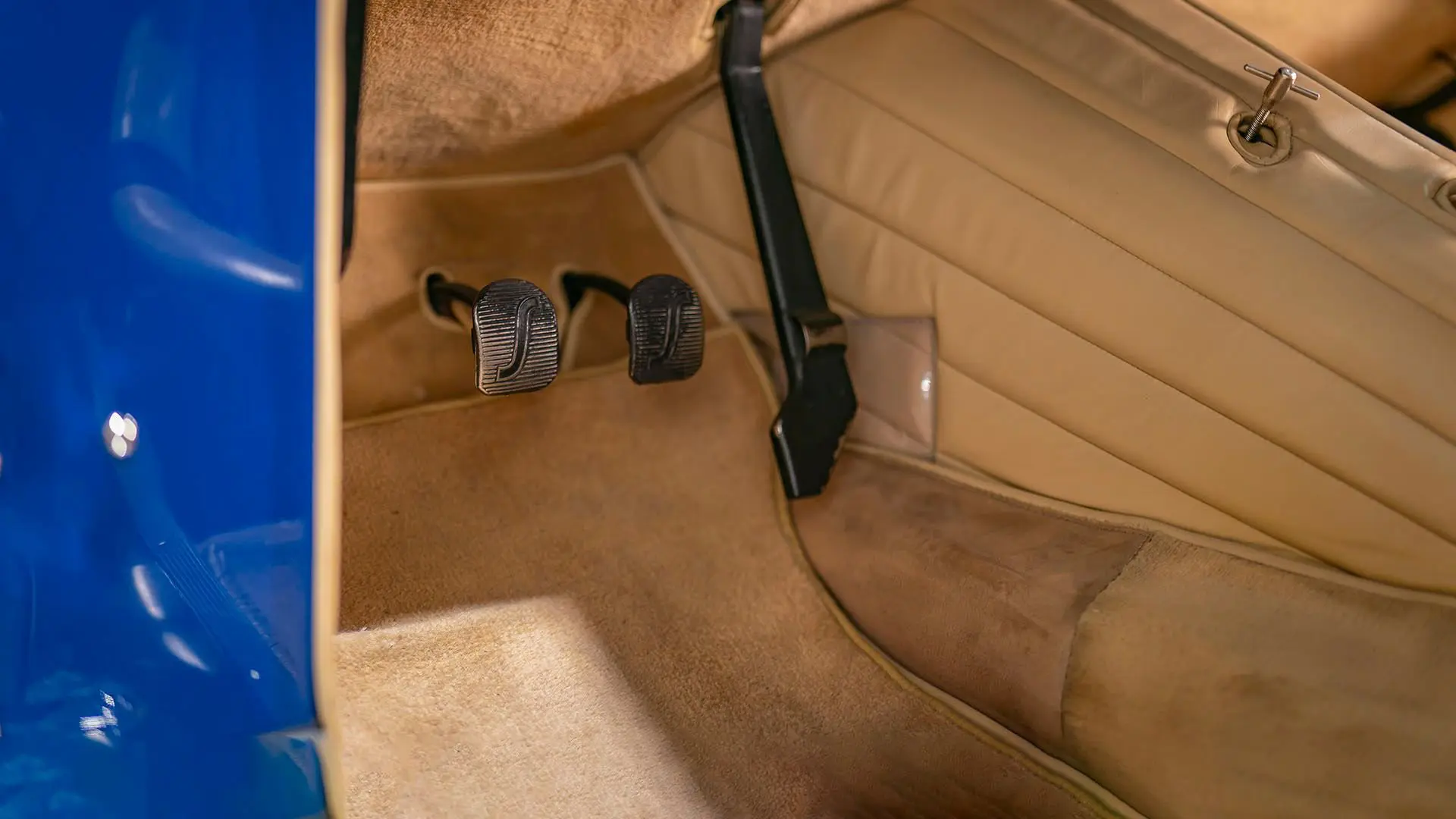 Après plusieurs années de recherche et de préparation, Walker entreprit de démonter la voiture pour une restauration complète. Au cours de ce travail de plusieurs années, il découvrit plusieurs vestiges de sa peinture bleu foncé et de sa sellerie en cuir beige d’origine. Ces vestiges furent soigneusement reproduits et ornent encore la voiture aujourd’hui. Gardien exigeant, Walker décida de conserver intacte une grande partie du charme Balbo artisanal de la CS072. C’est pourquoi cette importante Siata présente encore un visage plein de caractère et des touches authentiques, non restaurées, telles que ses soudures d’origine, ses badges émaillés imparfaits et sa tôle taillée artisanalement. Néanmoins, les détails restent particulièrement soignés, avec notamment de belles jantes à rayons Borrani polies, chaussées de pneus Pirelli Cinturato HS, qui confèrent à la belle carrosserie de berlinette Balbo une touche d’époque, fidèle à l’image de cette Siata livrée neuve.