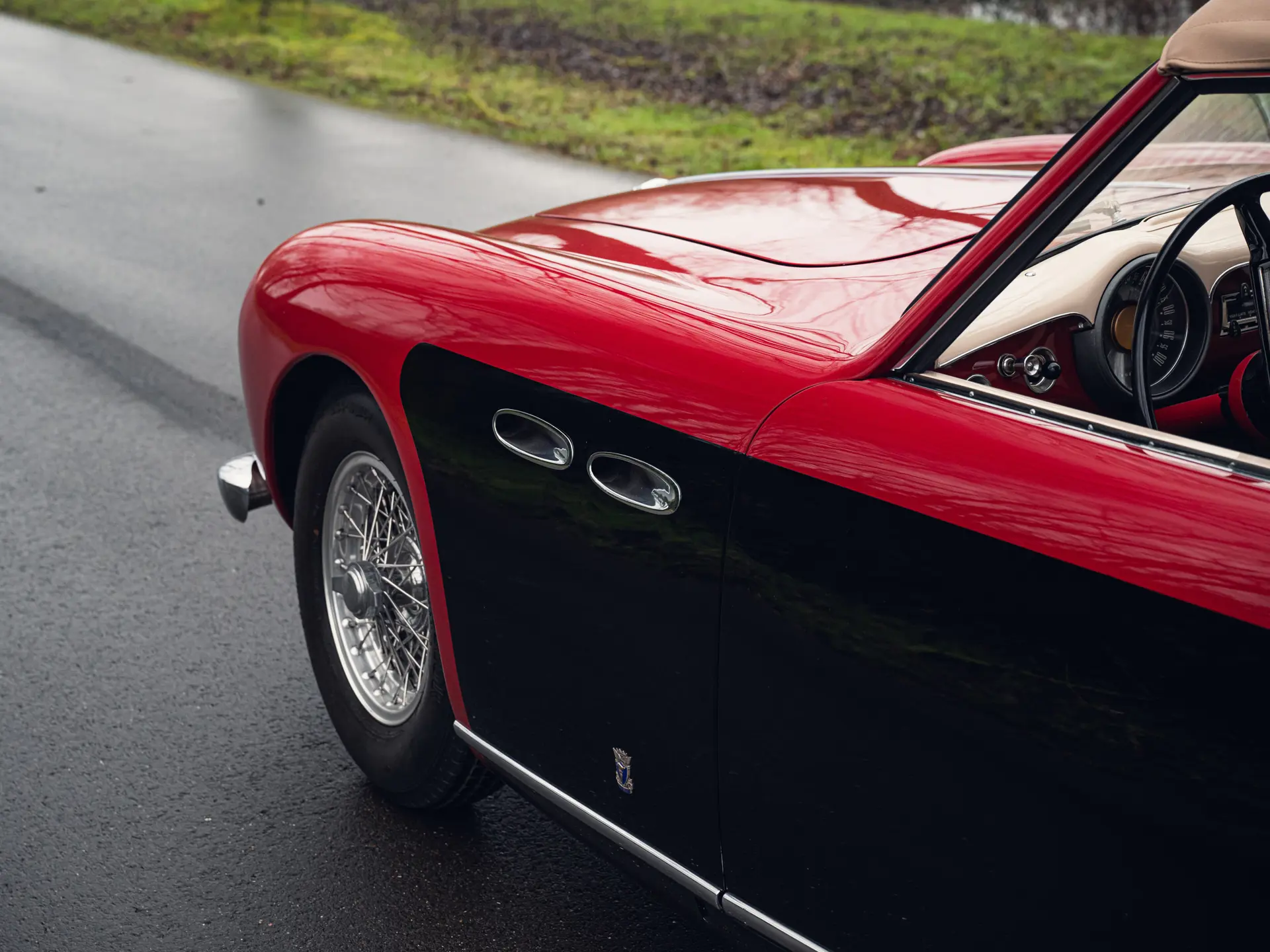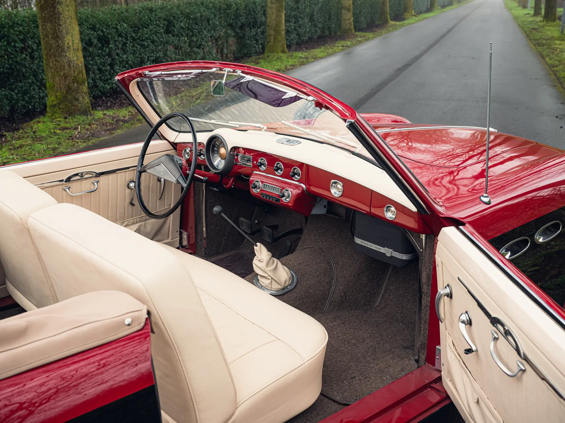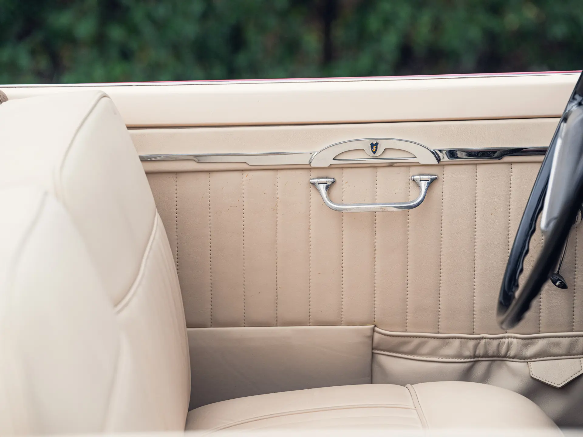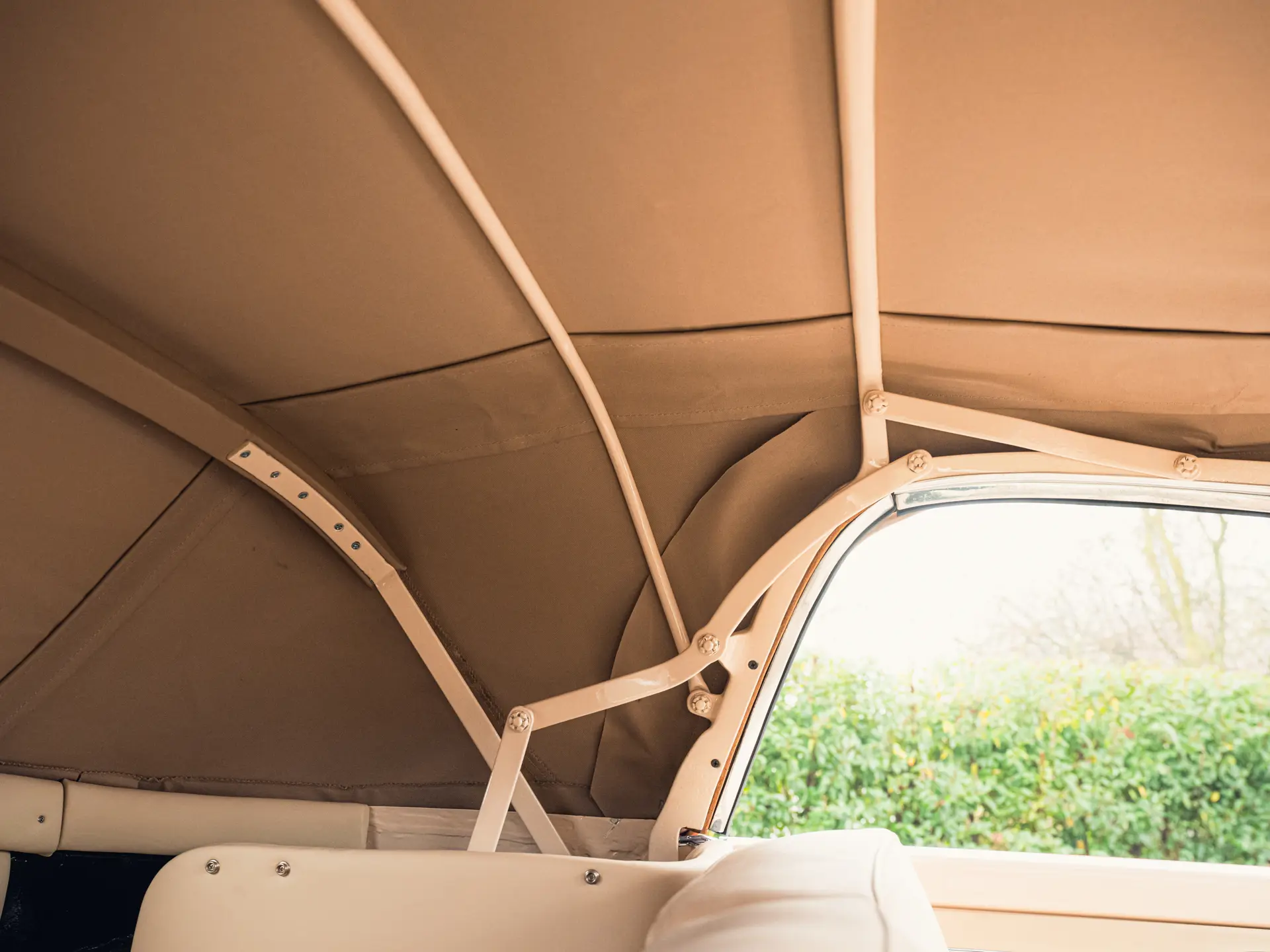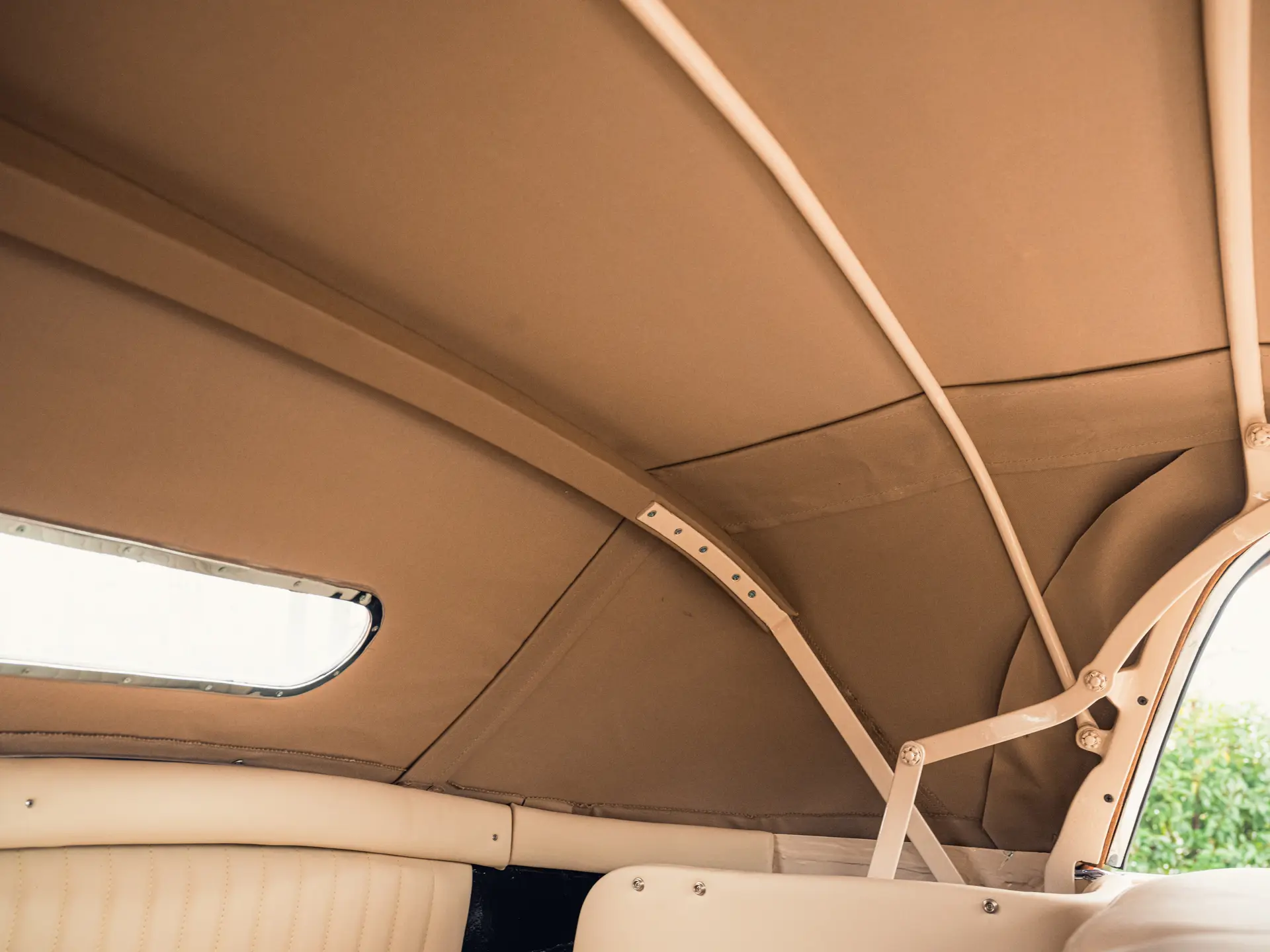 La 208S était tombée en désuétude à l’été 1988, lorsqu’elle a été rénovée pour la première fois par Kuttner. En 2005, elle a été achetée par Jerry Bensinger et Daniel Rapley, qui ont ensuite vendu la voiture à l’ancien propriétaire. Sa carrosserie en aluminium a été entièrement restaurée par l’atelier allemand Bernhardt Karosseriebau ; la carrosserie a ensuite été expédiée à Absolute Engineering de Goleta, en Californie, où le reste de la voiture était en cours de finition. La sellerie en cuir parchemin richement garnie de la voiture et le toit cabriolet parchemin assorti complètent à merveille l’instrumentation d’origine Ford.