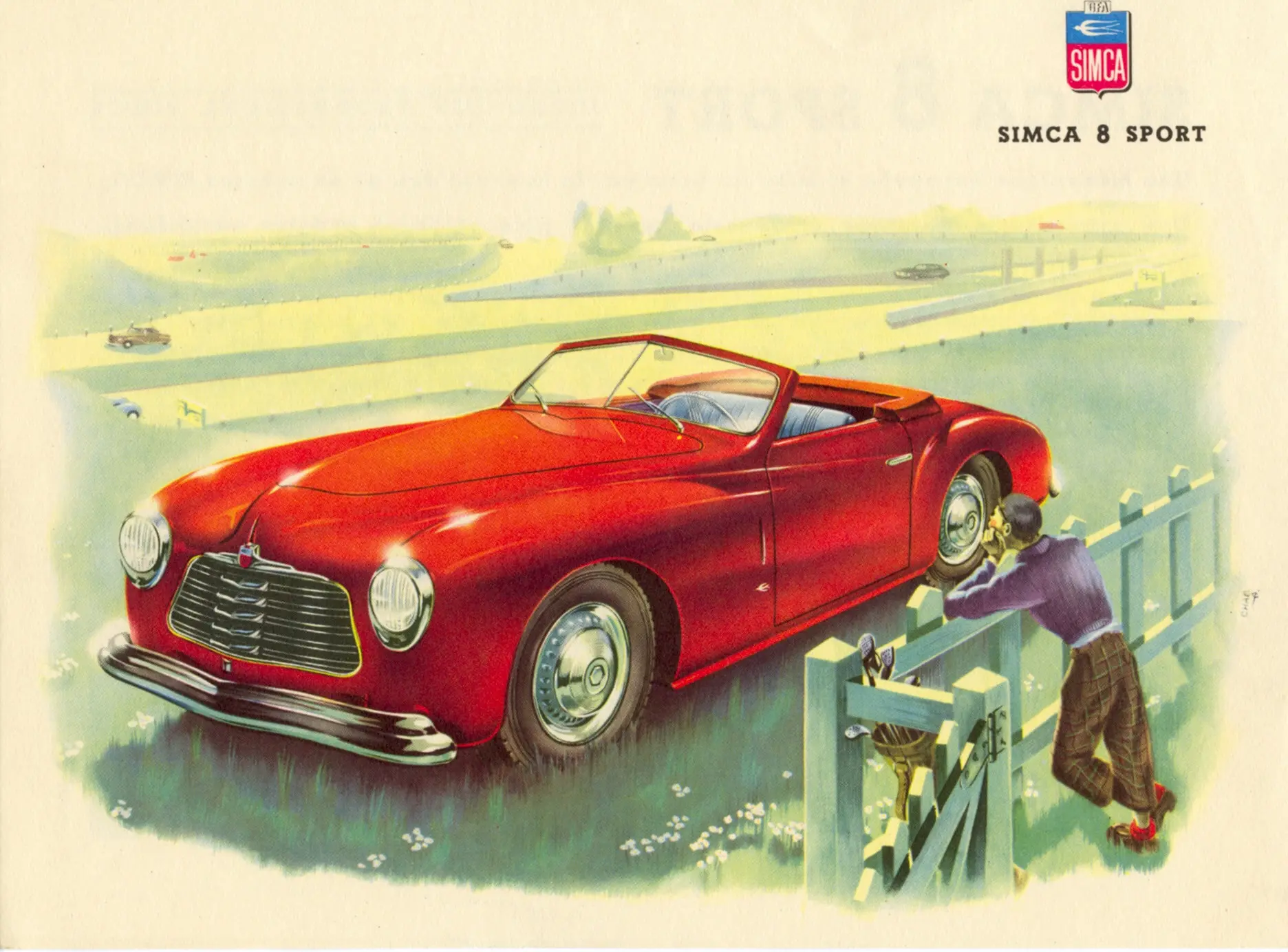 En 1948, Henri Pigozzi commande à Pinin Farina un design spécial pour sa populaire Simca 8. Présenté en octobre sur le stand de Simca au Salon de Paris, l’élégant prototype prototype est très apprécié du public et Pigozzi est tellement séduit qu’il décide de le produire en série limitée, sous le nom de Simca-Sport.