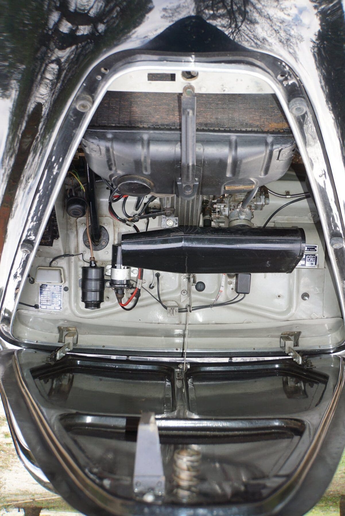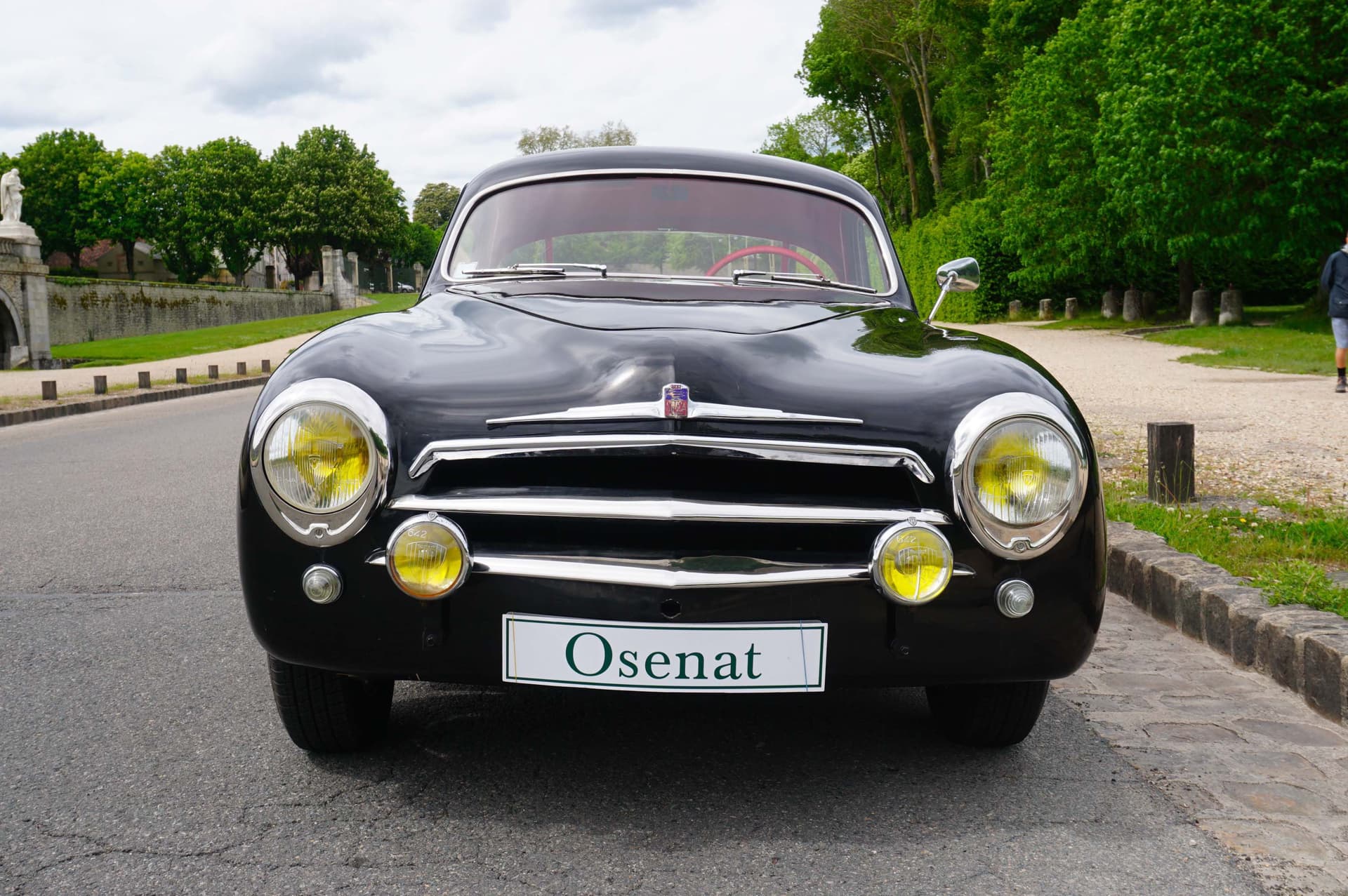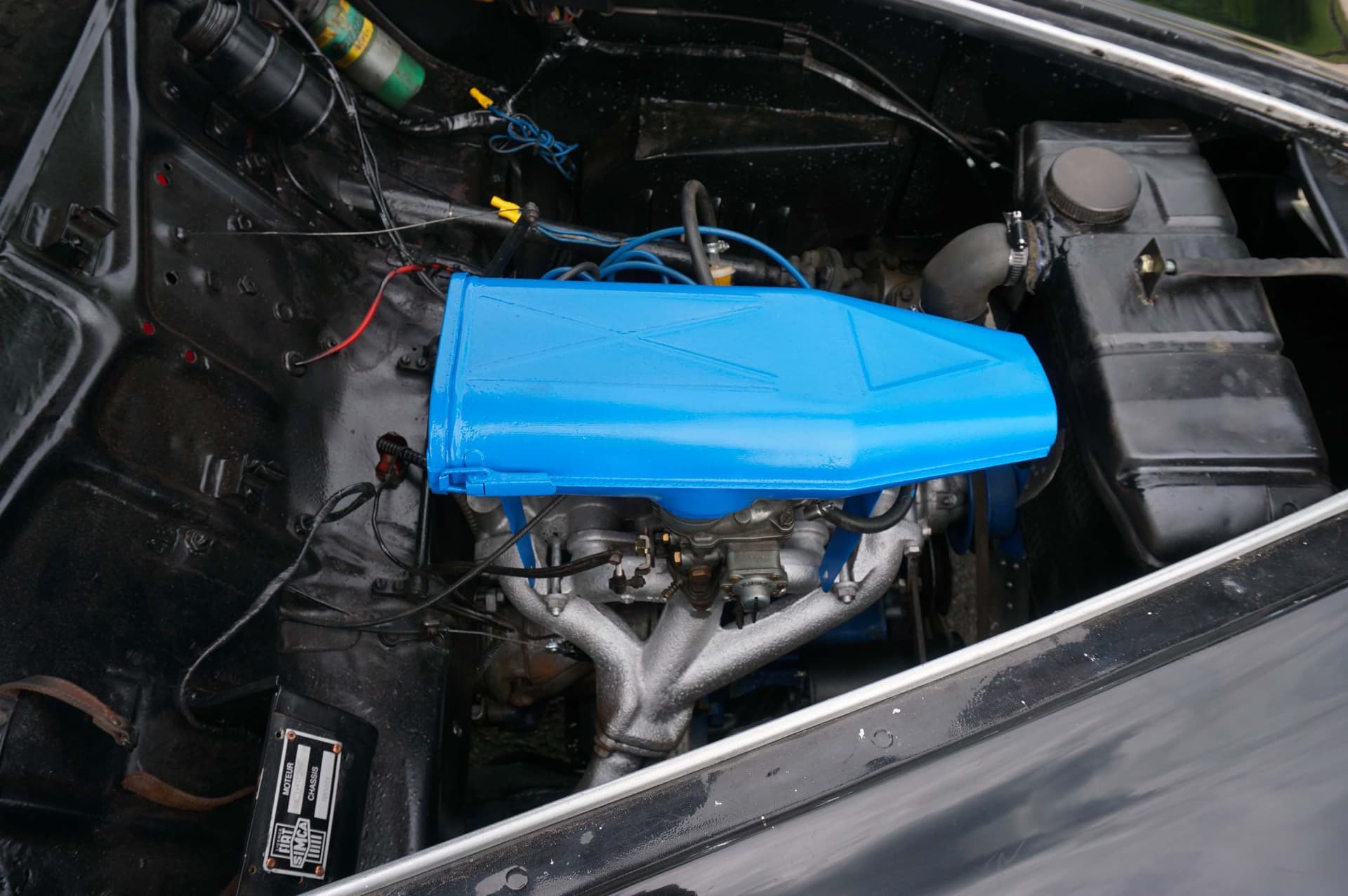 La Simca Sport présentée ici a été vendue neuve à un industriel français de la région de Toulouse. Elle a été ensuite achetée par un agent Renault, qui l’a conservée de 1973 à 1995 avant de la céder à un grand collectionneur qui a lui-même gardé cette voiture intéressante jusqu’en 2014. Le châssis, la carrosserie, le moteur et la boîte de vitesses sont d’origine, et la voiture (qui n’a jamais été accidentée) comporte toutes les options probablement disponibles à l’époque sur ce modèle. Ainsi, elle est dotée des enjoliveurs de roues à écopes pour favoriser le refroidissement des freins, du poste de radio d’origine, de phares antibrouillard à l’avant… Elle a été restaurée dans les années 1980 et le châssis a été spécifiquement traité contre la corrosion. Elle a pris part à de nombreux évènements et expositions, grâce à son équipement complet et surtout sa patine d’origine qui en fait une voiture extrêmement désirable.
