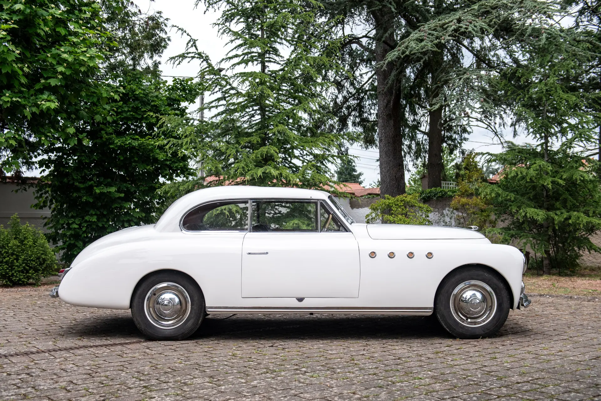 Ainsi que le confirme sa fiche de renseignements usine, le châssis 121504 fut livré le 20 mars 1951 à la carrosserie Figoni et Falaschi à Boulogne. Le beau châssis, équipé d’un puissant 4 cylindres 2.7L et d’une boîte de vitesses à commande pré sélective Wilson fut alors habillé d’une superbe carrosserie coach d’un dessin élégant et moderne pour l’époque et agrémentée d’un toit ouvrant.
