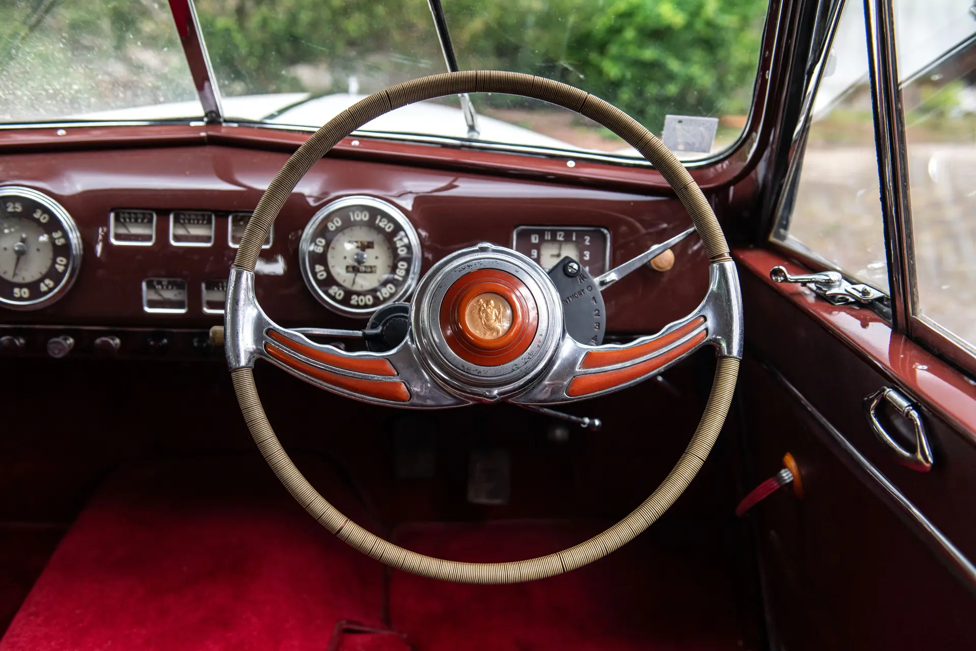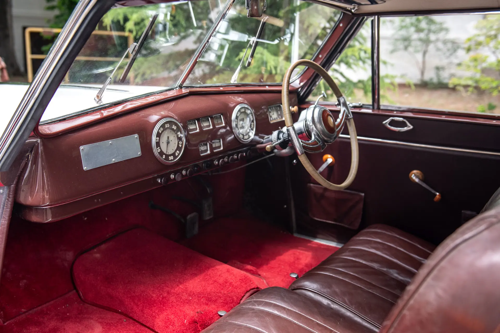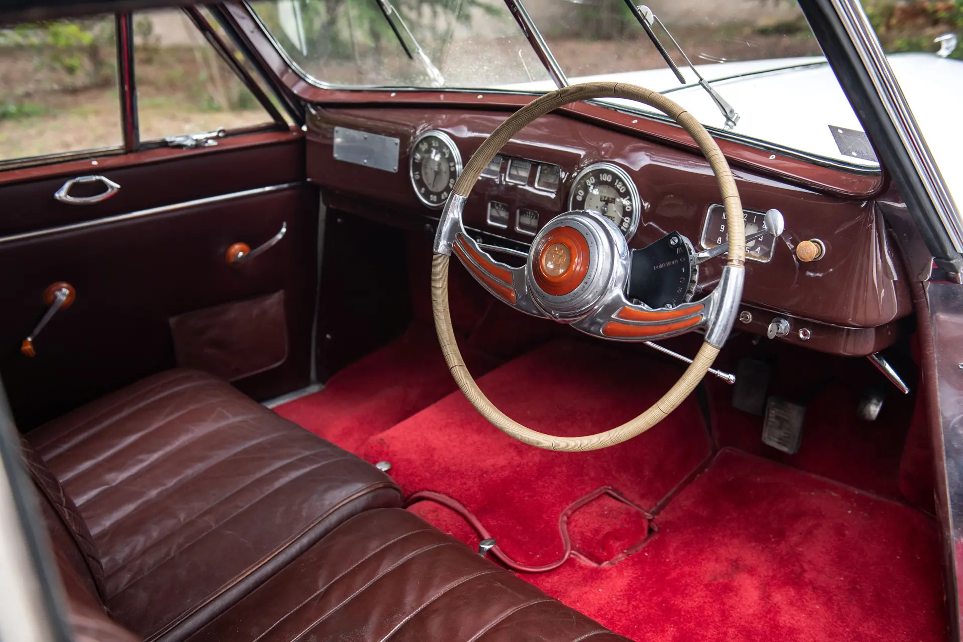 Il est exceptionnel de trouver une telle pièce, la seule connue, ayant conservé tous ses accessoires et détails spécifiques qui témoignent d’un savoir-faire qui allait disparaître au cours des années 50 : celui des automobiles faites sur-mesure.