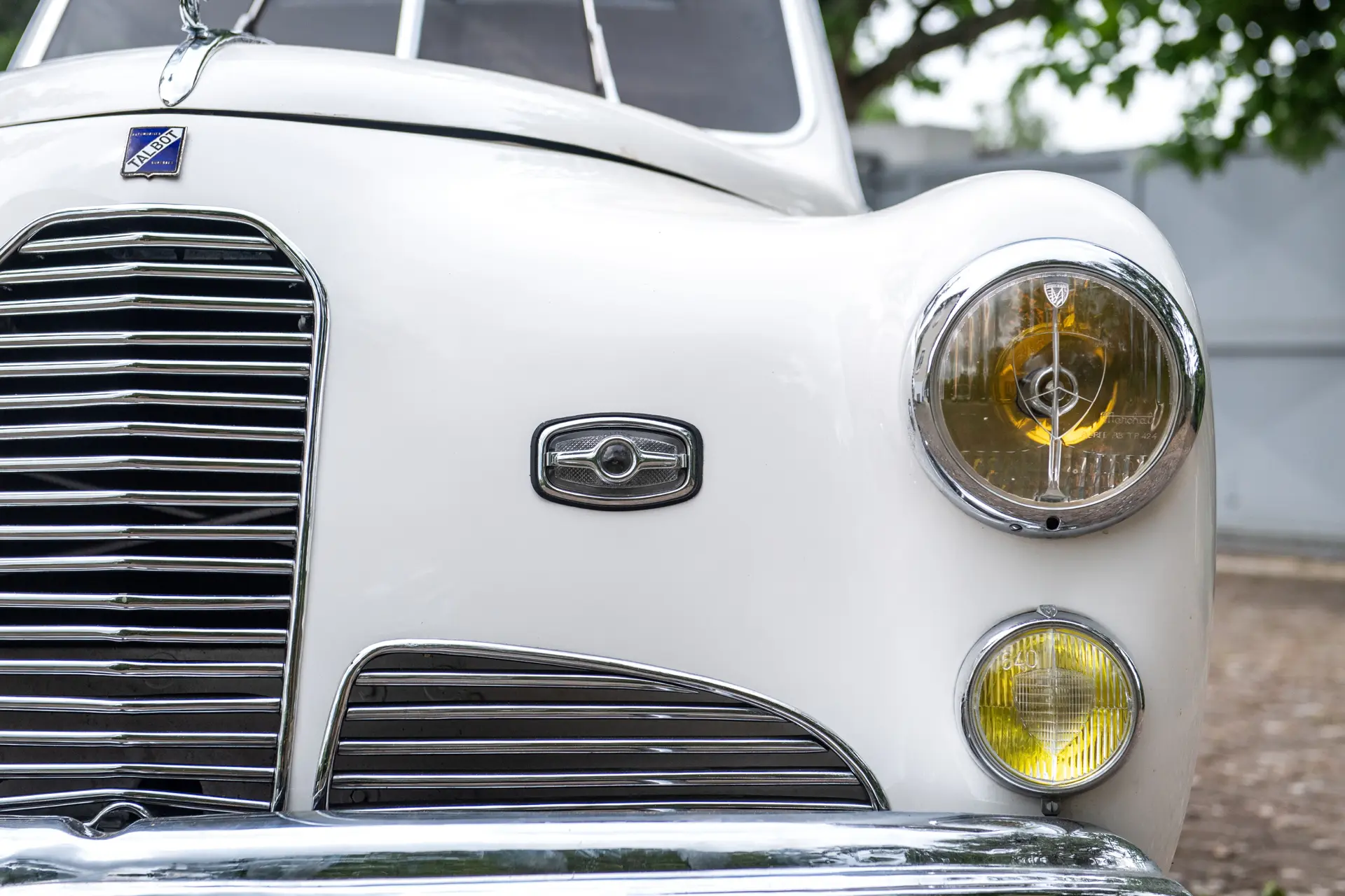 Bleu marine avec un intérieur en cuir rouge, la Talbot bénéficiait d’une qualité d’exécution exceptionnelle, propre aux grands carrossiers, et fut livrée à son commanditaire le 31 juillet 1951. Une photo ancienne confiée par le Club Talbot montre la voiture à cette époque, très certainement lors d’un concours d’élégance.