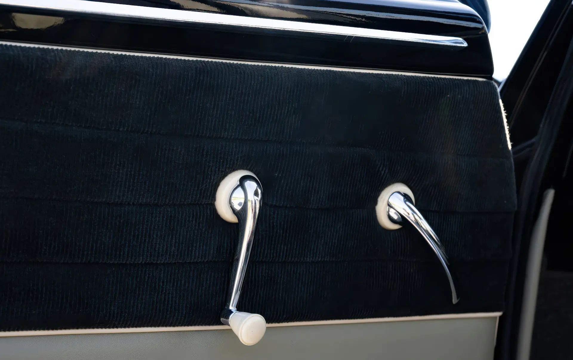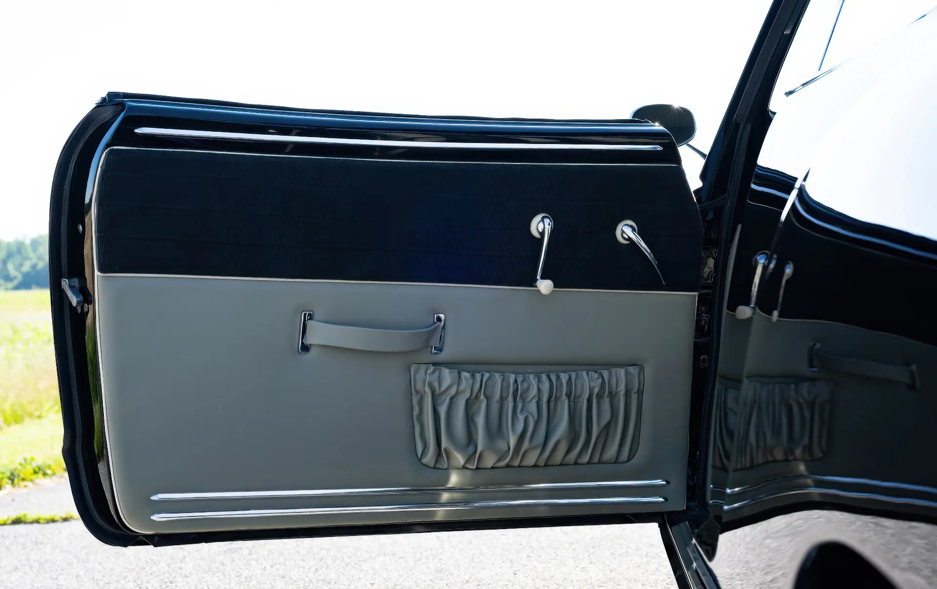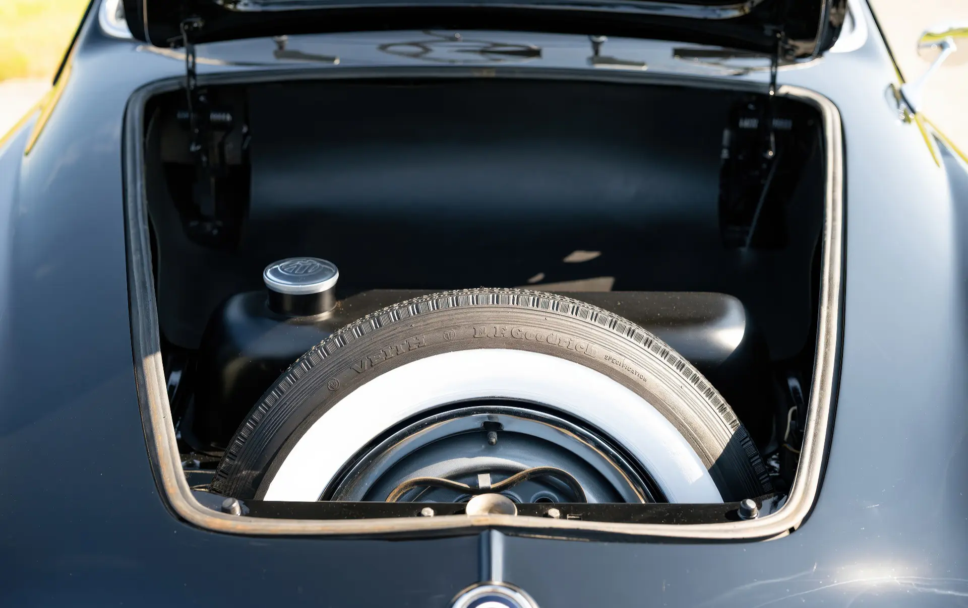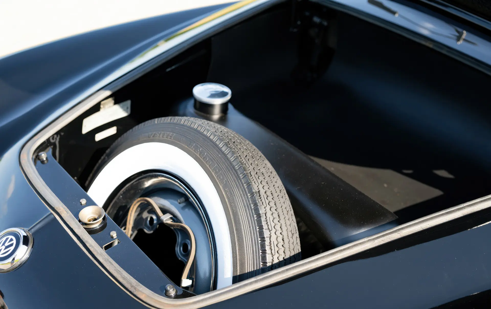 Livrée en 1957, cette Karmann Ghia étincelante est un exemple désirable de faible luminosité, finie à l’origine en noir Toucan sur des sièges en vinyle gris clair avec des inserts en velours côtelé gris foncé. Commandée à Midwestern Volkswagen à Columbus, dans l’Ohio, elle a été livrée à l’usine Volkswagen d’Osnabrück, en Allemagne, à Mary Brown, une institutrice américaine désireuse de voyager en Europe. Un an et 6 000 miles mémorables plus tard, Mme Brown a renvoyé la voiture en Ohio.