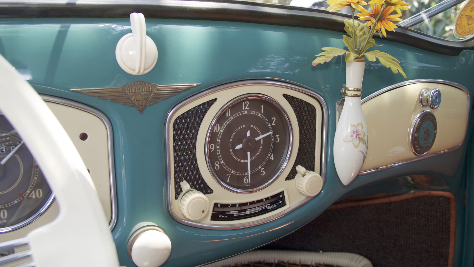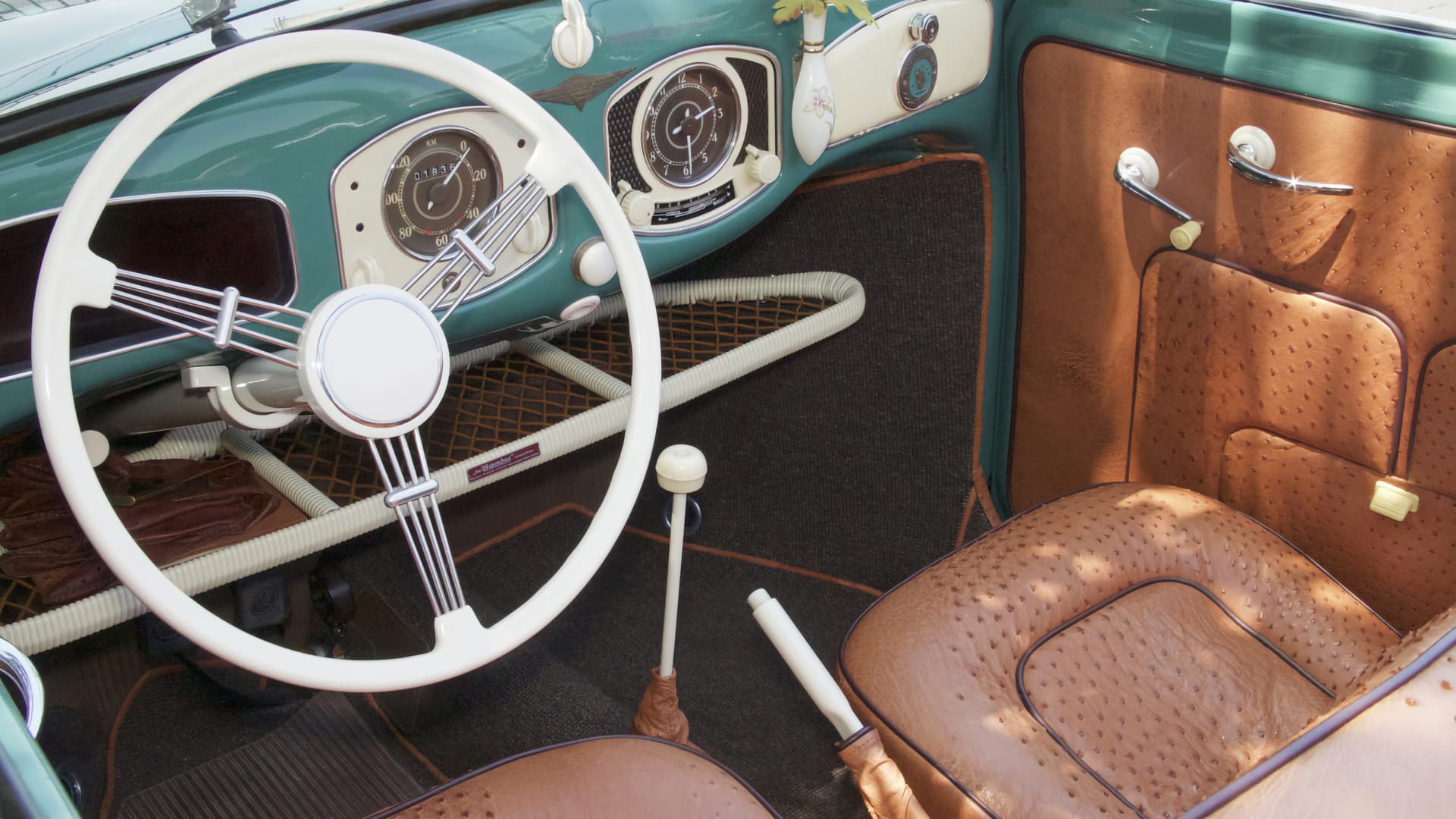 La capote était équipée d’une isolation de toit, d’une garniture de toit sur mesure et d’une lunette arrière en verre. La voiture était construite sur un châssis Volkswagen standard et embarquait les mêmes éléments mécaniques. Cependant, la carrosserie a été modifiée avec un capot arrière allongé – reprenant la forme du capot avant. Ce capot arrière remodelé arbore des bouches d’aération de refroidissement. Les bras des clignotants ont été placés dans la zone du capot latéral proche de l’aile avant. Les voitures étaient dotées d’accessoires «haut de gamme» de l’époque, tels qu’une radio Telefunken amovible, un kit d’accessoires de pique-nique et un vase à fleurs en porcelaine pour le tableau de bord.